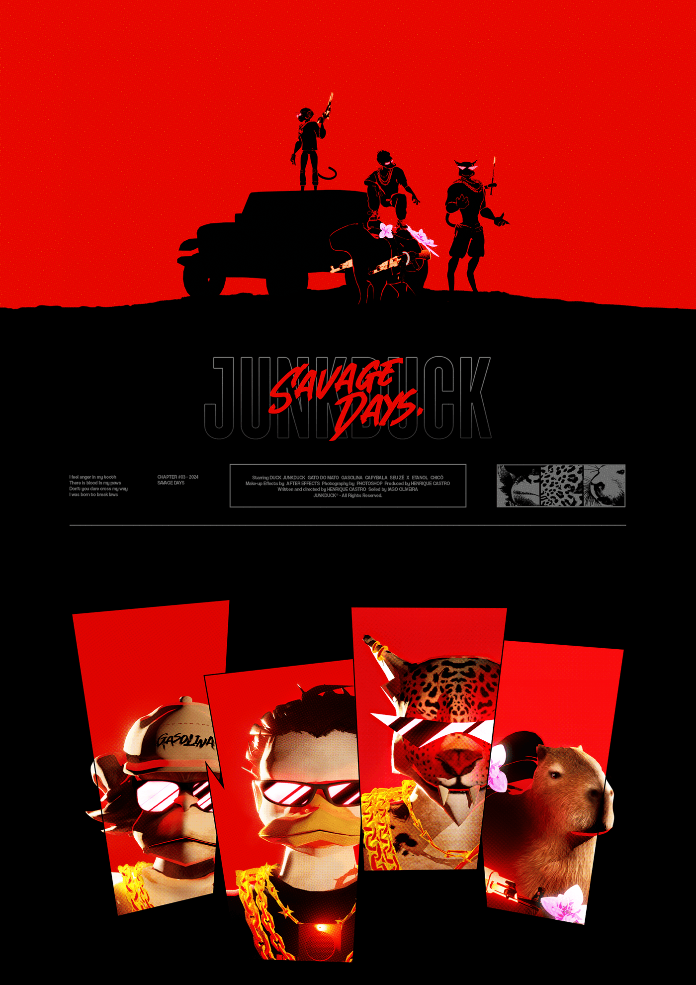 Neste capítulo, a JUNK buscou remeter à uma estética mais agressiva e irreverente em suas peças. Em todos os aspectos, a coleção busca remeter à referências brazucas e criar personagens icônicos e expressivos, reforçando ainda mais o multiverso que a JUNKDUCK está criando.