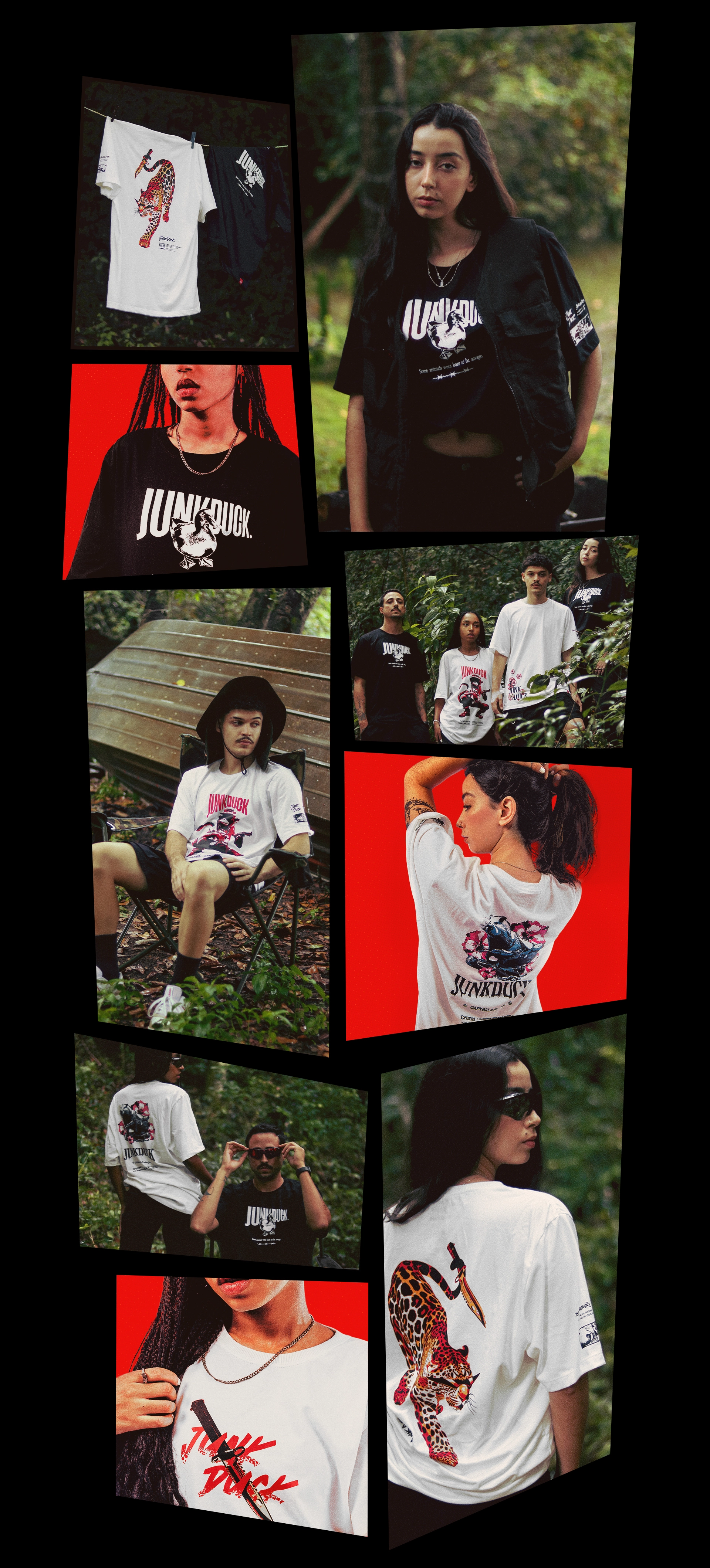 JUNKDUCK é uma marca de streetwear brasileira que conta histórias através de suas coleções. A marca cria narrativas épicas e insanas para representar seus produtos, onde cada peça representa um fragmento deste universo.